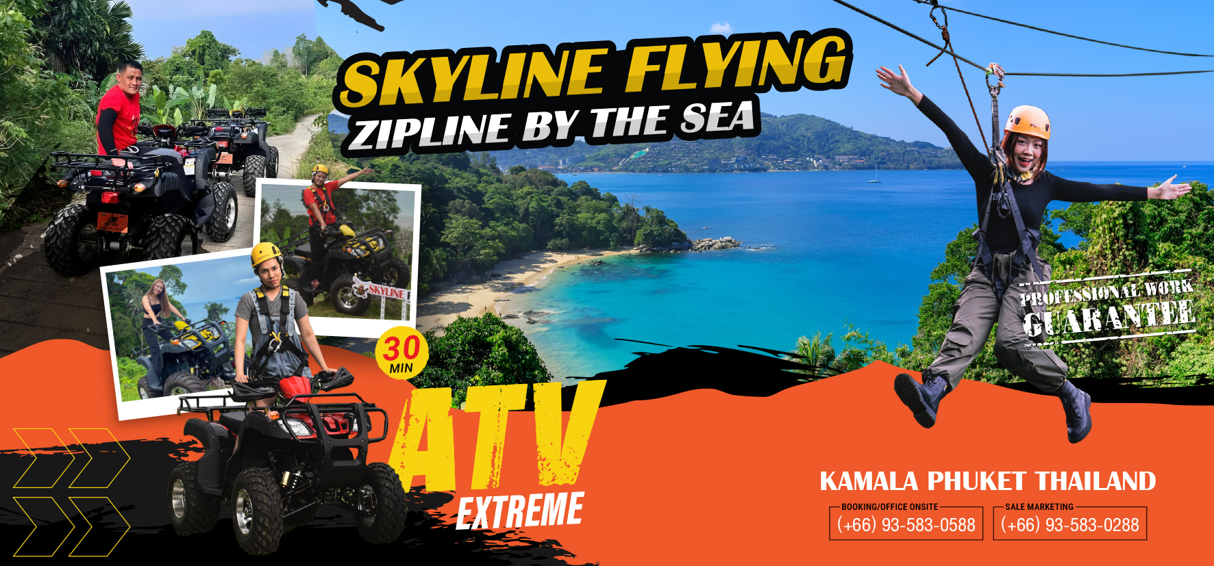 Embark on the adventure of a lifetime at Skyline Flying Phuket! Open Gateway to KAMALA Beach. Glide through lush jungle canopies on an exhilarating zipline course, offering breathtaking views of Phuket’s natural beauty. Add an extra dose of excitement with an optional ATV ride across rugged terrain, providing an adrenaline-pumping outdoor experience. Feel the wind in your hair and the thrill of exploration as you conquer the wilderness. Whether you’re traveling as a family, couple, group, or solo adventurer, this attraction promises a heart-pounding experience you’ll never forget. Embrace the rush and unleash your inner explorer!